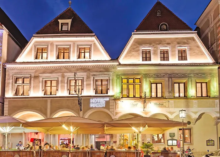 Det 4 stjernede Hotel Mader Steyr tilbyder 16 værelser i nærheden af Roter Brunnen, som ligger ca. 600 meter derfra. Centrum af Steyr kan man nå inden for 15-minutters gårtur.